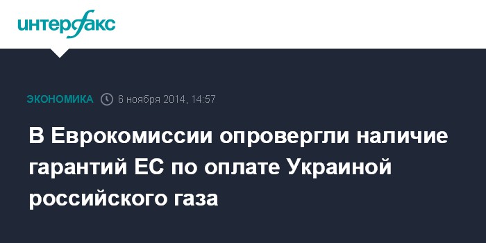 Москва. 6 ноября. INTERFAX.RU - В Европейской Комиссии опровергают заявления о гарантиях со стороны Европейского Союза по оплате российского газа, который будет закупаться НАК "Нафтогаз Украины" в зимний период.
