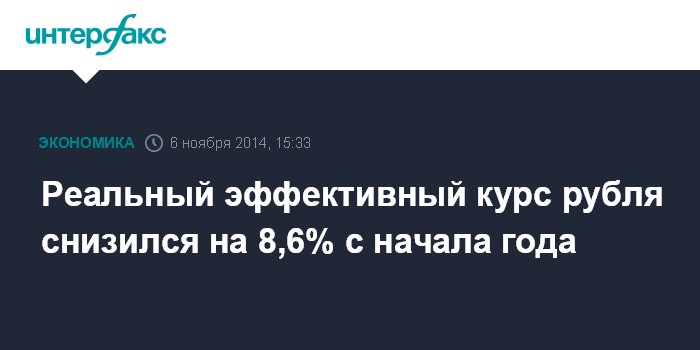 В январе-октябре 2014 года реальный эффективный курс рубля снизился на 8,6%.