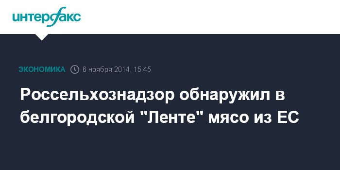 Москва. 6 ноября. INTERFAX.RU - Белгородское управление Россельхознадзора выявило в сети "Лента" мясо, произведенного на предприятиях Бельгии, Италии и Венгрии, сообщает пресс-служба ведомства.