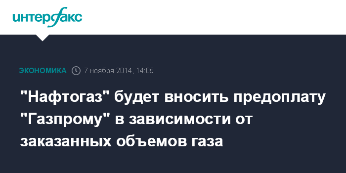 В то же время компания будет вносить предоплату по счету "Газпрома" в зависимости от заказанных объемов газа. "Объем и график внесения предоплаты зависит от того, в каком объеме и когда "Нафтогаз" будет заказывать газ у "Газпрома", - отмечается в сообщении.