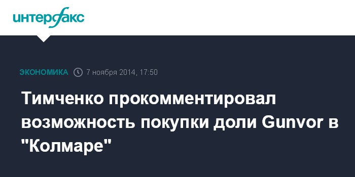 Москва. 7 ноября. INTERFAX.RU - Бизнесмен Геннадий Тимченко, бывший совладелец трейдера Gunvor, пока не готов купить долю в угольной компании "Колмар", принадлежащую трейдеру (30%).