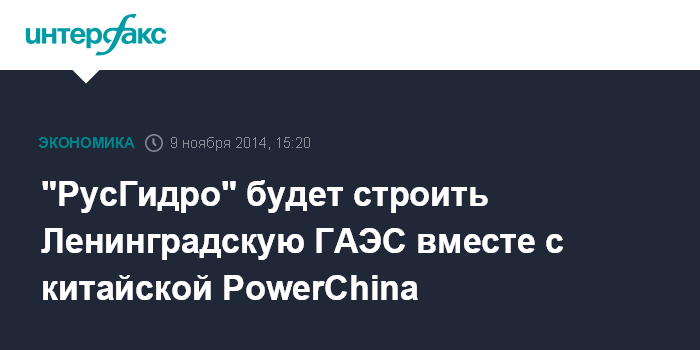 Москва. 9 ноября. INTERFAX.RU - ОАО "РусГидро" подписало соглашение с китайской компанией PowerChina о совместном строительстве Ленинградской ГАЭС и участии в других перспективных проектах ГАЭС, сообщила российская компания.
