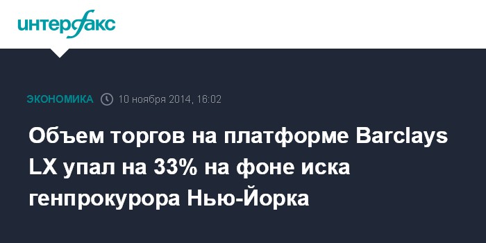 Объем торгов на платформе Barclays LX упал на 33% на фоне иска генпрокурора Нью-Йорка