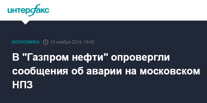 Москва. 10 ноября. INTERFAX.RU - В пресс-службе "Газпром нефти" опровергли информацию об аварии на Московском нефтеперерабатывающем заводе, которая могла стать причиной распространения в столице неприятного запаха.
