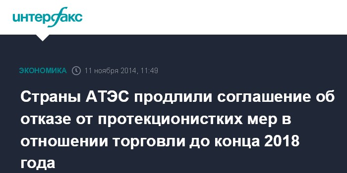 "Мы продлеваем действие нашего соответствующего обязательства до конца 2018 года и вновь подтверждаем готовность к сворачиванию протекционистских и других ограничительных мер в отношении торговли", - говорится в декларации, принятой по итогам саммита АТЭС в Пекине.