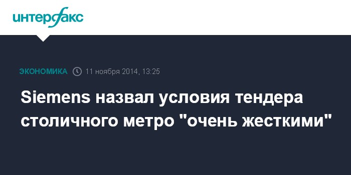 Москва. 11 ноября. INTERFAX.RU - Немецкий концерн Siemens считает "очень жесткими" условия тендера ГУП "Московский метрополитен" на поставку 768 вагонов, однако решил подать заявку.