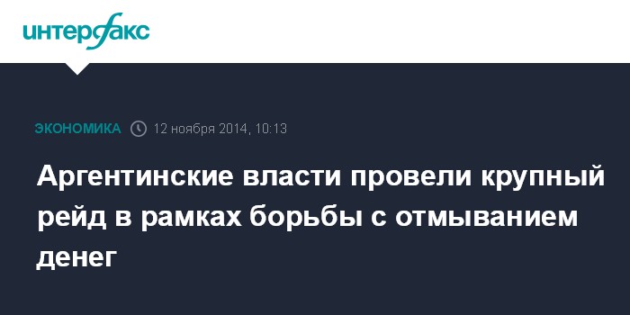 Москва. 12 ноября. INTERFAX.RU - Аргентине был проведен крупный рейд в рамках борьбы с отмыванием денег, сообщает BBC.
