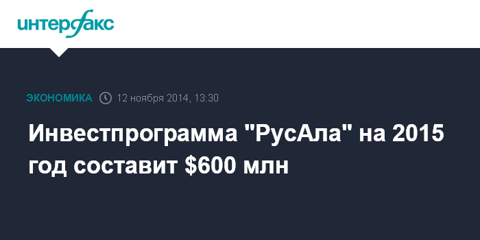 Инвестпрограмма "РусАла" на 2015 год составит $600 млн