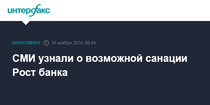 Москва. 14 ноября. INTERFAX.RU - ЦБ РФ рассматривает возможность санации Рост банка, пишут "Ведомости" со ссылкой на источники, близкие к надзорному блоку ЦБ и руководству банка, а также одного из контрагентов банка.