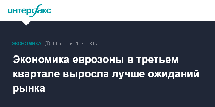 В апреле-июне экономика валютного блока увеличилась на 0,1% относительно предыдущего квартала и на 0,8% по сравнению с тем же периодом 2013 года. Оба показателя были на 0,1 процентного пункта лучше ранее объявленных значений.