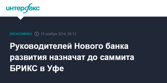 Руководителей Нового банка развития назначат до саммита БРИКС в Уфе