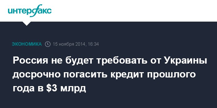 Россия не будет требовать от Украины досрочно погасить кредит прошлого года в $3 млрд