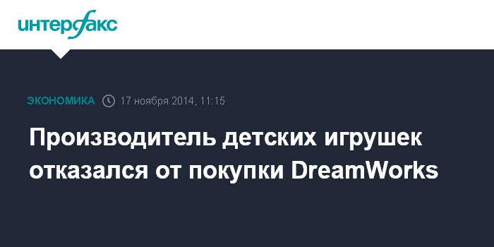 Москва. 17 ноября. INTERFAX.RU - Американский производитель детских игрушек Hasbro Inc. отказалась от идеи купить анимационную студию DreamWorks Animation, сообщает Variety.