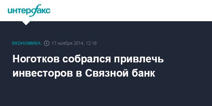 Москва. 17 ноября. INTERFAX.RU - Основатель группы "Связной" Максим Ноготков надеется привлечь инвесторов для стратегического развития Связного банка.