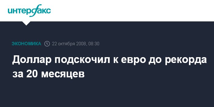Москва. 22 октября. INTERFAX.RU - Доллар вырос к евро до максимума за 20 месяцев на ожиданиях, что Европейский центральный банк (ЕЦБ) снизит процентные ставки, чтобы обеспечить экономический рост в регионе на фоне приближающейся мировой рецессии, сообщило агентство Bloomberg.