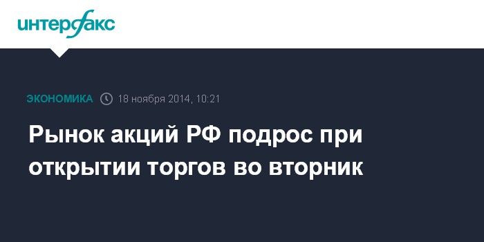 Москва. 18 ноября. INTERFAX.RU - Рынок акций РФ открылся во вторник ростом цен blue chips на фоне коррекционного отскока в Азии после падения накануне, а также на фоне отсутствия расширения антироссийских санкций Евросоюзом; индексы ММВБ и РТС за минуту торгов прибавили 0,2-0,5%.