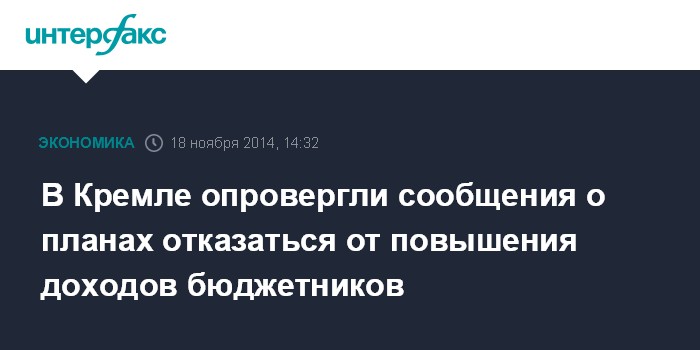 Москва. 18 ноября. INTERFAX.RU - В Кремле не подтвердили информацию о том, что требования к выполнению майских указов 2012 года президента РФ Владимира Путина по повышению доходов бюджетников могут быть ослаблены с учетом текущей финансово-экономической ситуации.