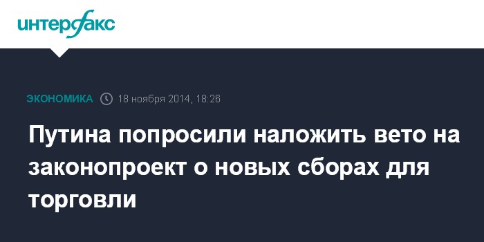 Путина попросили наложить вето на законопроект о новых сборах для торговли