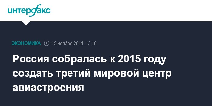 Россия собралась к 2015 году создать третий мировой центр авиастроения