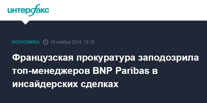 Французская прокуратура заподозрила топ-менеджеров BNP Paribas в инсайдерских сделках