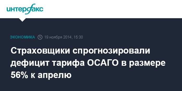 Страховщики спрогнозировали дефицит тарифа ОСАГО в размере 56% к апрелю