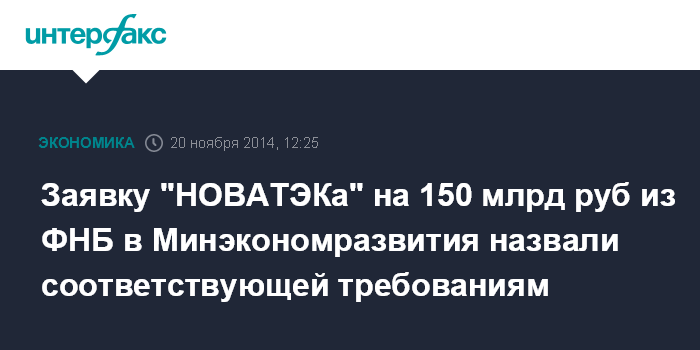 Заявку "НОВАТЭКа" на 150 млрд руб из ФНБ в Минэкономразвития назвали соответствующей требованиям