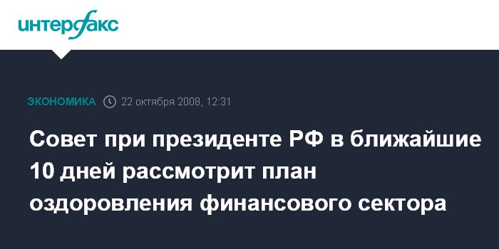 Совет при президенте РФ в ближайшие 10 дней рассмотрит план оздоровления финансового сектора