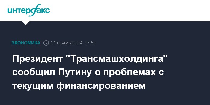 Президент "Трансмашхолдинга" сообщил Путину о проблемах с текущим финансированием