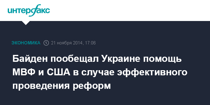 Москва. 21 ноября. INTERFAX.RU - Вице-президент США Джозеф Байден обещает помощь США и международных партнеров, если Украина будет эффективно проводить реформы.