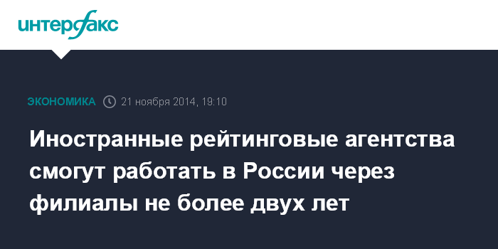 Иностранные рейтинговые агентства смогут работать в России через филиалы не более двух лет