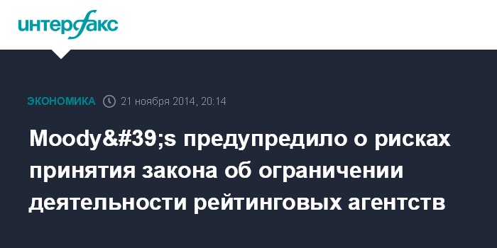 Москва. 21 ноября. INTERFAX.RU - Российские эмитенты рискуют лишиться рейтингов по национальной шкале в случае принятия закона, регулирующего деятельность рейтинговых агентств, в его нынешнем варианте, предупреждает агентство Moody's.