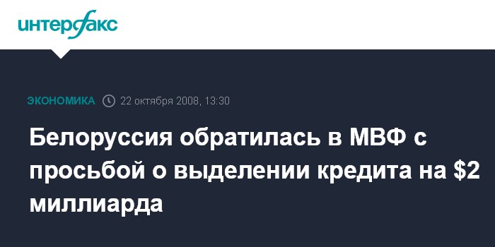 Москва. 22 октября. INTERFAX.RU - Правительство и Национальный банк Белоруссии несколько дней назад обратились в Совет директоров Международного валютного фонда с просьбой о предоставлении резервного кредита на $2 миллиарда.