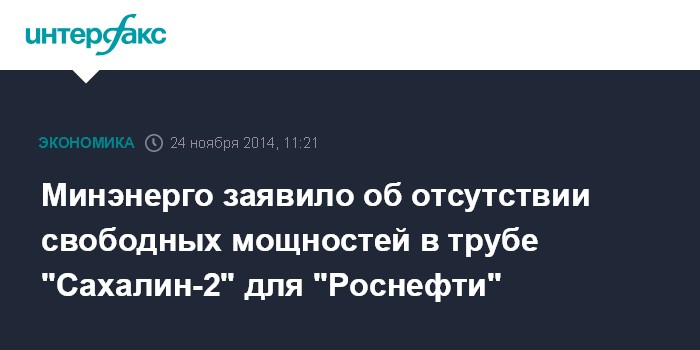 Москва. 24 ноября. INTERFAX.RU – Свободных мощностей в газопроводе проекта "Сахалин-2" нет, приводит Арбитражный суд Сахалинской области официальную позицию Минэнерго, которое является уполномоченным органом от России в этом СРП-проекте.