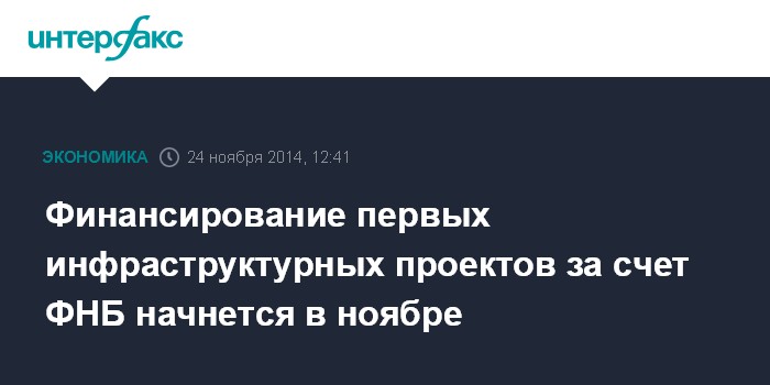 Финансирование первых инфраструктурных проектов за счет ФНБ начнется в ноябре
