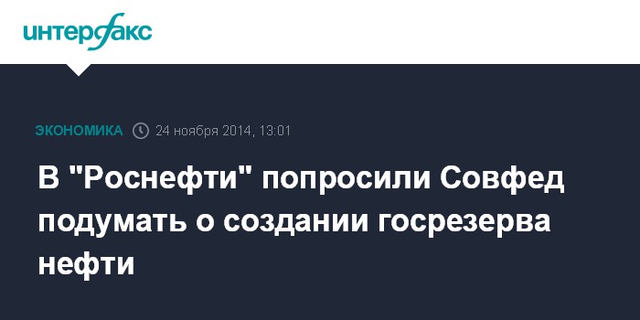 "Надо было бы вернуться к вопросу о том, чтобы создать инфраструктуру, которая позволила бы государству формировать резерв нефти в период, когда она в избытке, и для того, чтобы выбрасывать ее на рынок в противоположной ситуации", - озвучил свою точку зрения председатель совета директоров "Роснефти" в ходе парламентских слушаний "О мерах по предупреждению негативных вызовов национальной экономике и о первоочередных задачах экономического развития в современных условиях".