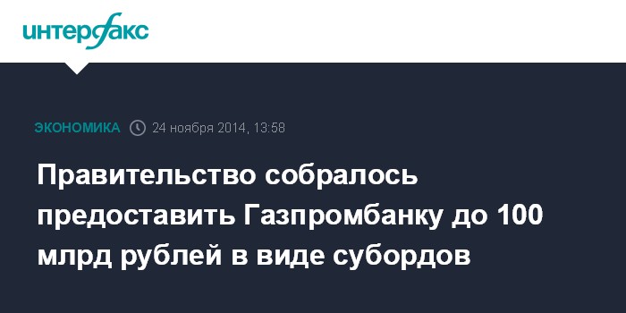 Правительство собралось предоставить Газпромбанку до 100 млрд рублей в виде субордов