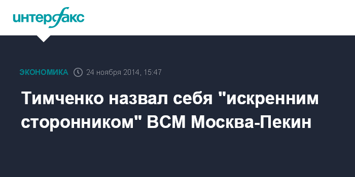 Москва. 24 ноября. INTERFAX.RU - Идея строительства железнодорожной высокоскоростной магистрали (ВСМ) между Москвой и Пекином привлекает бизнесмена Геннадия Тимченко, который является руководителем российской части Делового совета России и Китая.