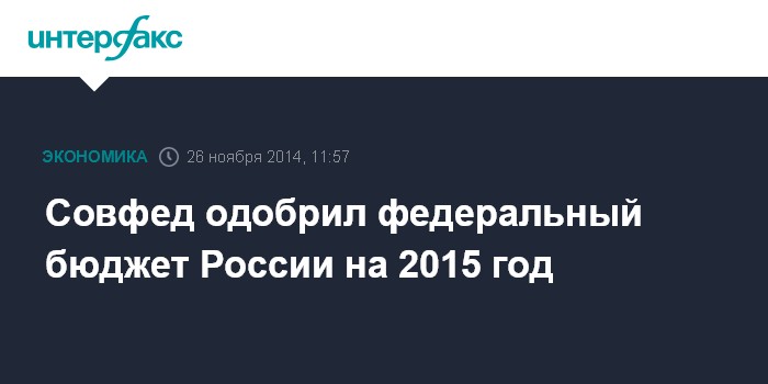 Москва. 26 ноября. INTERFAX.RU – Совет Федерации одобрил федеральный бюджет на 2015 год и плановый период 2016-2017 годов.