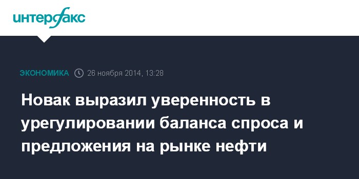 Москва. 26 ноября. INTERFAX.RU - Баланс спроса и предложения на рынке нефти будет урегулирован рыночным путем, уверен министр энергетики России Александр Новак.
