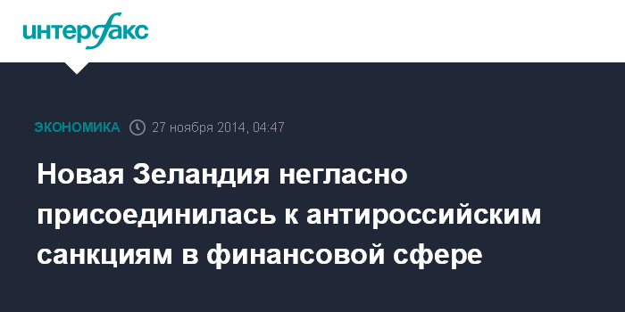 Новая Зеландия негласно присоединилась к антироссийским санкциям в финансовой сфере