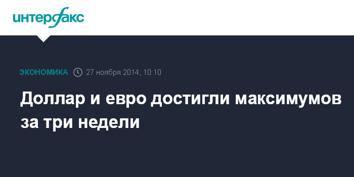 Москва. 27 ноября. INTERFAX.RU – Доллар и евро существенно растут третьи торги подряд при открытии сессии на Московской бирже, обновляя трехнедельные максимумы, рубль падает по отношению к бивалютной корзине на фоне падения цен нефти.