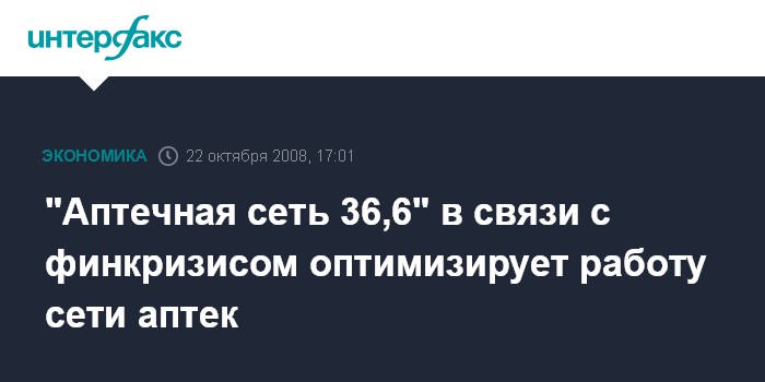 "Аптечная сеть 36,6" в связи с финкризисом оптимизирует работу сети аптек