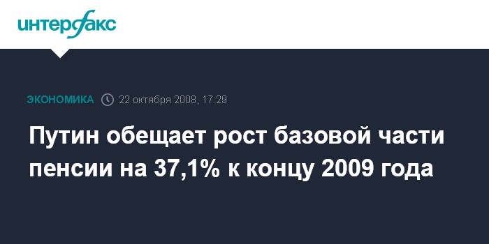 Путин обещает рост базовой части пенсии на 37,1% к концу 2009 года