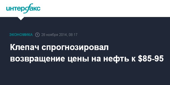 Москва. 28 ноября. INTERFAX.RU - Решение ОПЕК не снижать уровень добычи нефти приведет к снижению цен на нефть вплоть до $60 за баррель в краткосрочной перспективе, но в дальнейшем цены могут опять подняться до нового равновесного уровня в $85-95 за баррель, высказал "Интерфаксу" свое мнение зампред ВЭБа, бывший заместитель министра экономического развития РФ Андрей Клепач.