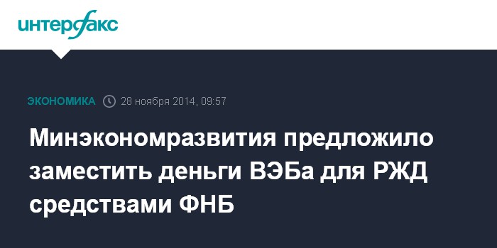 Минэкономразвития предложило заместить деньги ВЭБа для РЖД средствами ФНБ