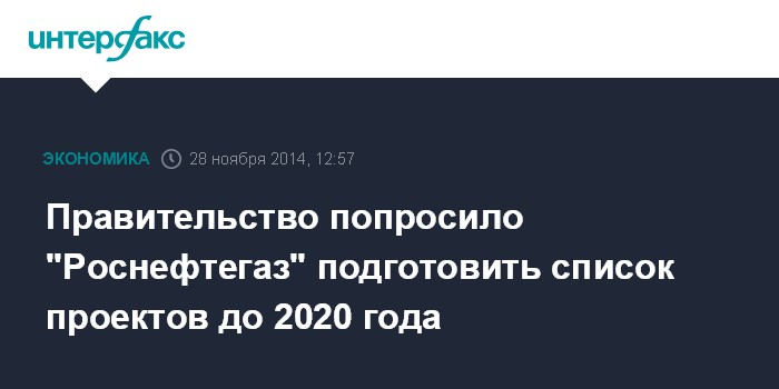 Правительство попросило "Роснефтегаз" подготовить список проектов до 2020 года