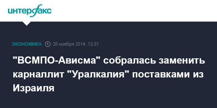 Москва. 28 ноября. INTERFAX.RU - Корпорация "ВСМПО-Ависма", которая закупает у "Уралкалия" карналлит, готова сотрудничать с израильскими поставщиками сырья, а также использовать альтернативную технологию производства титановой губки, сообщил "Интерфаксу" гендиректор корпорации Михаил Воеводин. Он добавил, что это позволяет компании "не беспокоиться и работать в штатном режиме".