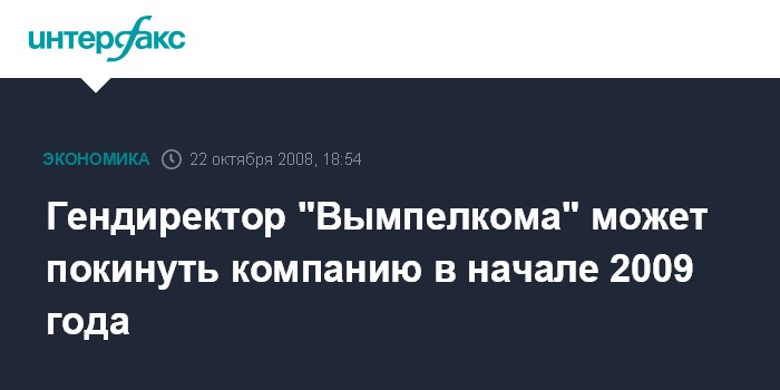 Гендиректор "Вымпелкома" может покинуть компанию в начале 2009 года