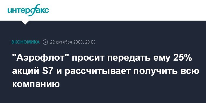 "Аэрофлот" просит передать ему 25% акций S7 и рассчитывает получить всю компанию