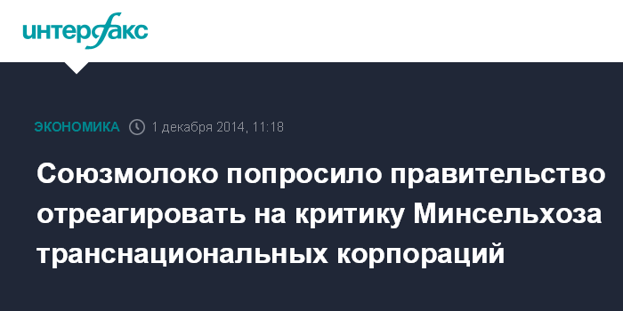 В свою очередь, глава департамента животноводства Минсельхоза РФ Владимир Лабинов, чье заявление Минсельхоз распространил в качестве официальной позиции ведомства, сказал, что критика транснациональных компаний обоснована.